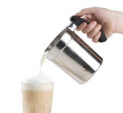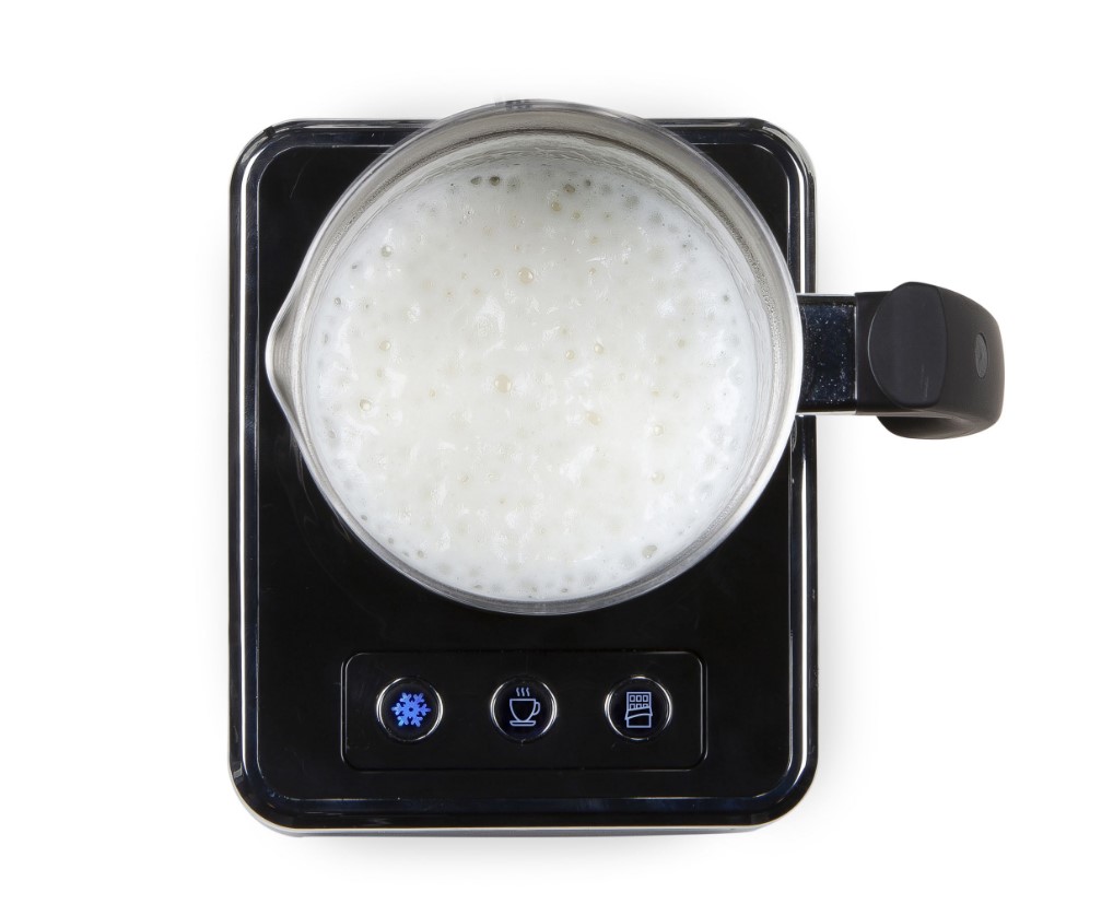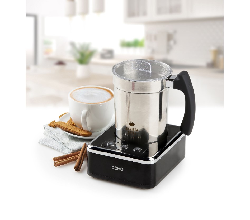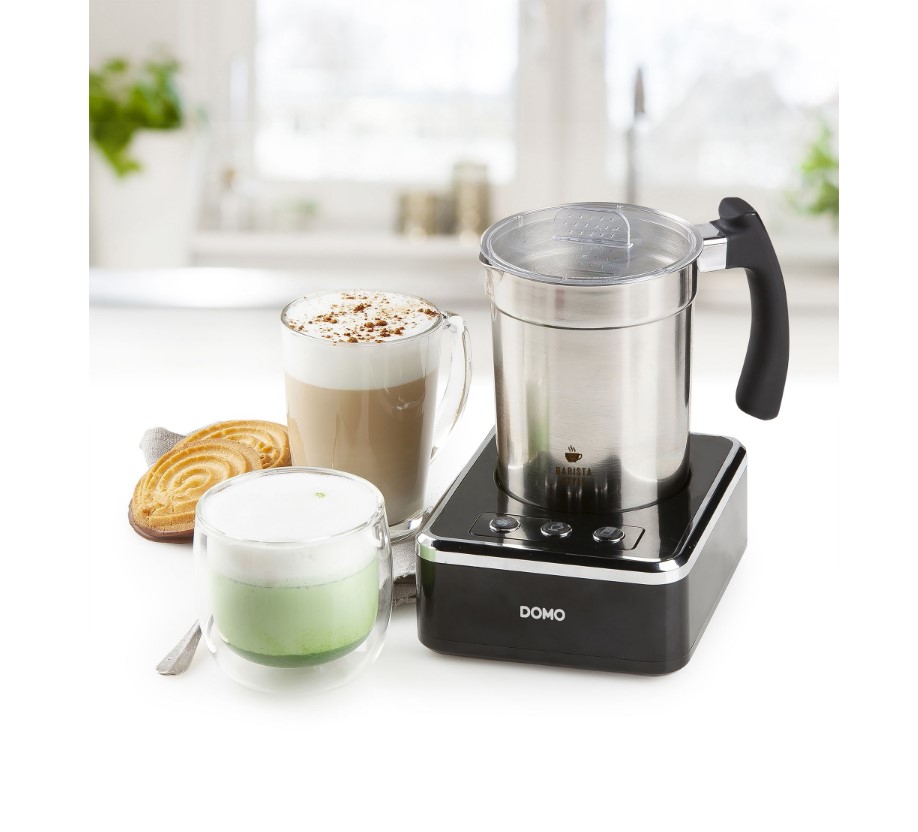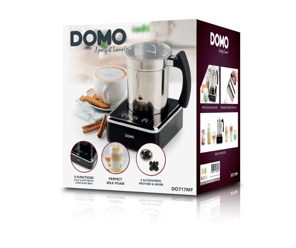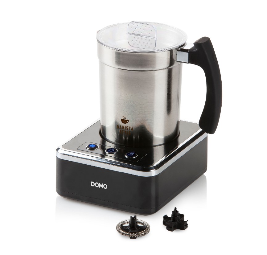 Create the tastiest milk drinks in no time. The push of a button gives you perfect milk foam with DOMO’s DO717MF milk frother. Make up to 200 ml of warm milk in the handy stainless steel jug. The two accessories can be used for both hot milk (mixer) and milk foam (whisk). The appliance has three functions: cold milk froth, hot milk froth, and hot chocolate milk. In just three minutes, you can conjure up the following delicacies: cappuccino, latte, café au lait, chococino, chocolate milk, and more.