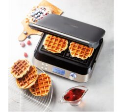 It’s waffle time! DOMO’s DO9219W waffle iron cooks literally any type of waffle perfectly thanks to its automatic programs. We don’t call this one the ‘Waffle Genius’ for nothing. The appliance has five programs: ‘Brussels’, ‘Belgian’, ‘Breakfast/Healthy’, ‘Liège’ and a personalised ‘Custom’ program. You choose the baking time yourself in the latter program. You can set the browning level for each program as you wish. The appliance counts down while baking and gives a signal when the waffles are ready. The advanced waffle plates are uniquely developed with overflow and the shape ensures an ideal waffle thickness. The result? Fluffy, crispy, and uniform waffles.